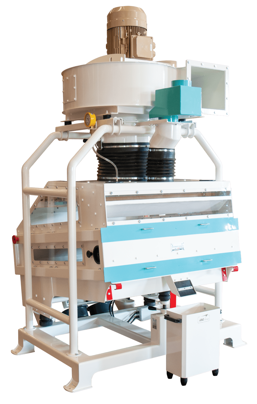 Makine üzerine adaptasyonu yapılan fan, çok özel bir yapıya sahiptir. Makine üzerindeki led aydınlatma ve pleksiglas camlar, içeriyi görmek ve ayar yapabilmek için kolaylık sağlar. Bir adet fan motoru ve iki adet vibro motorla tahrik sağlanmıştır.